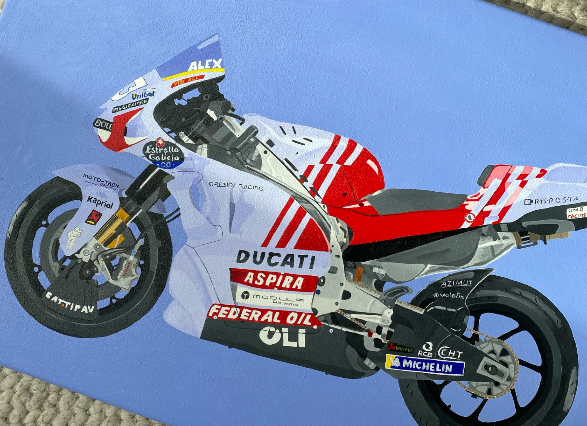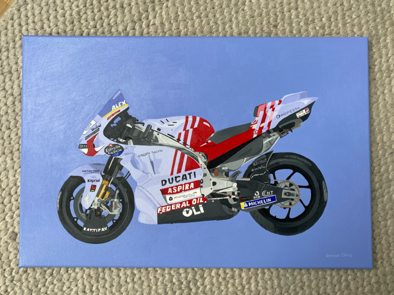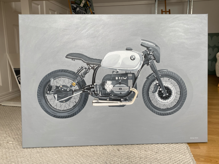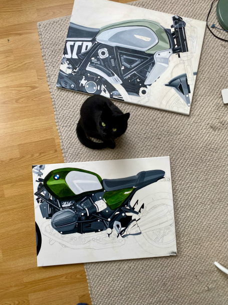 In het atelier werk ik op het moment aan een Moto Guzzi V85 schilderij. Daarnaast ben ik aan het experimenten met het ontwerpen van een poster collectie.